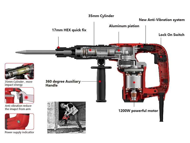 ● Diseño de baja vibración y ruido con alta energía de impacto.